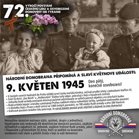 V časných ranních hodinách do Prahy vjíždějí první tanky maršála Koněva, začínají prudké střety s jednotkami Waffen–SS. Části SS divizí „Das Reich“ a „Wallenstein” kladou tuhý odpor, pokračují v boji a masakrech civilistů. Jednotky Rudé armády postupně eliminují početné odstřelovače ve vyšších patrech objektů a na střechách budov. Rudá armáda bojuje s esesáky a postupuje Prahou nadšeně vítána rozkvetlými šeříky, symbolem květnového povstání. V důsledku bojů v Praze a okolí umírá na 3 000 českých povstalců, na 700 vojáků Rudé armády a přes 300 Vlasovců. Květnové povstání českého lidu potvrzuje, že národ dokáže povstat proti nepříteli a bojovat za svou domovinu!